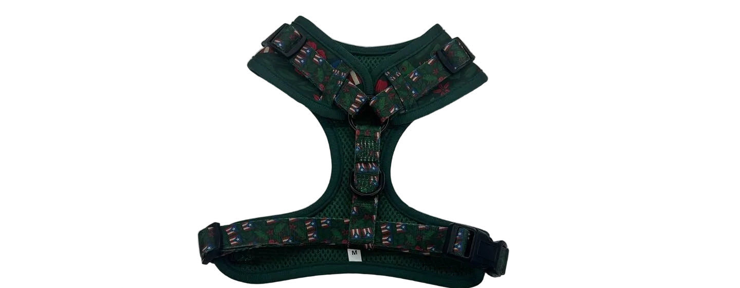 Arnés premium para perros con diseño exclusivo inspirado en símbolos taínos ancestrales. Resistencia probada en laboratorio hasta 434+ lbs de tracción.